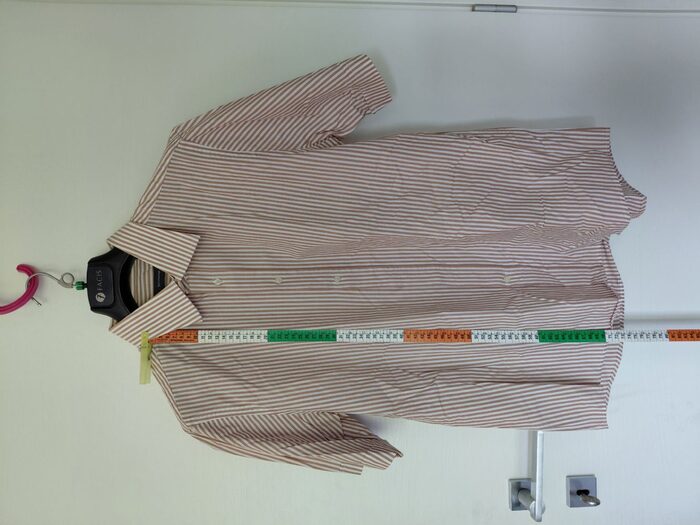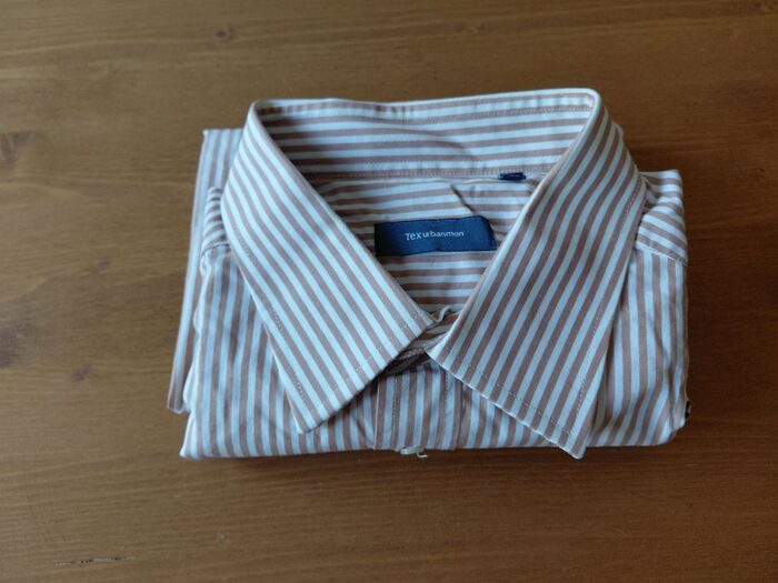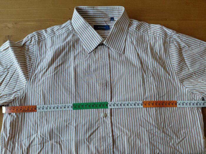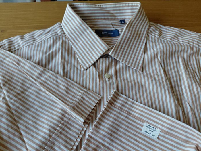 Camiciotto uomo 43 righe beige (o marrone chiaro) 100% cotone. Misure ed etichetta in foto. Consegna a mano o Collettiva Varese. .