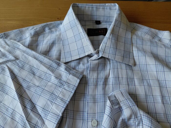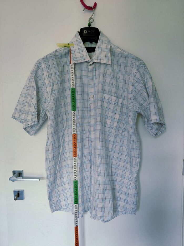 Camiciotto uomo XL azzurro a quadri. Cotone, ben tenuto. Etichetta e misure in foto. Consegna a mano o collettiva Varese. .