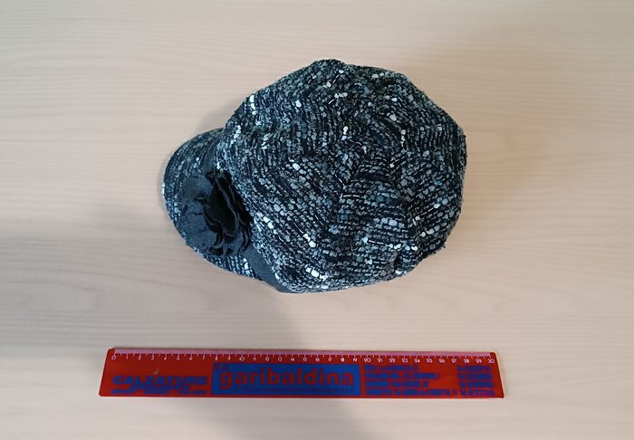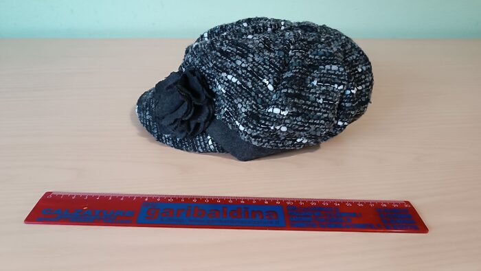 Cappello con visiera e decorazione rosa NuovoColore base grigio65% cotone35% poliestere .