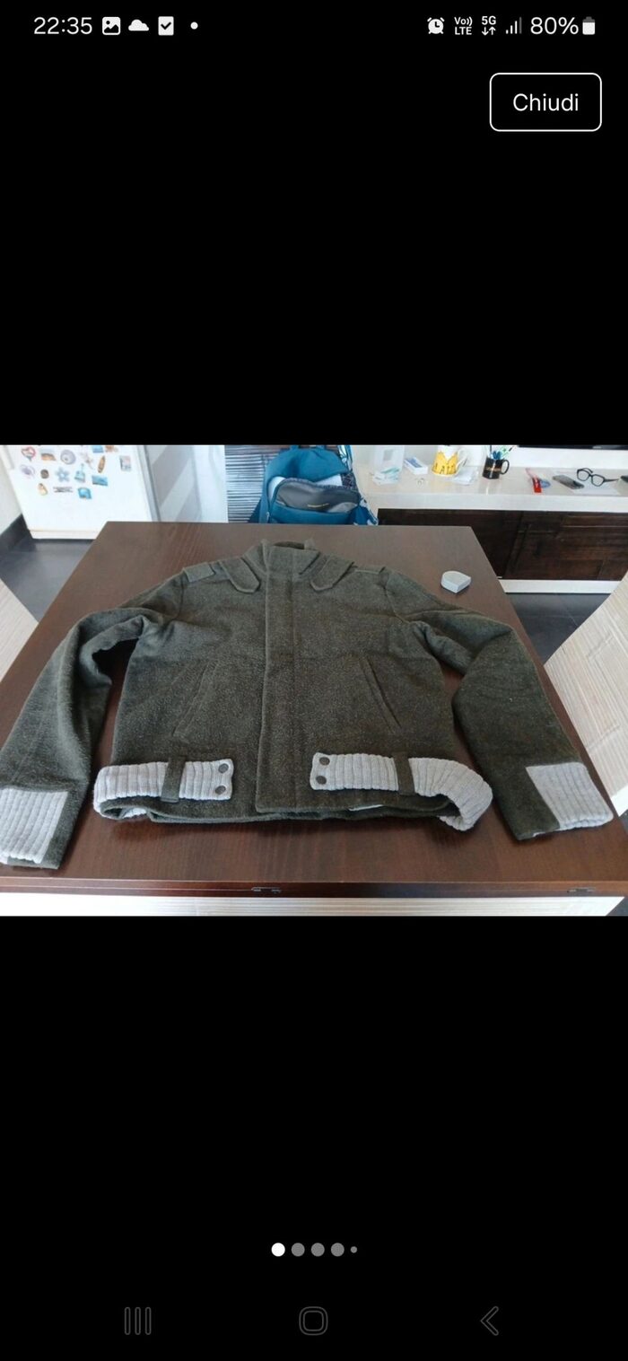 Cappotto tipo panno lenci. TG. M. Non c''è composizione. Ascella ascella 50 cm, lunghezza 63 cm .