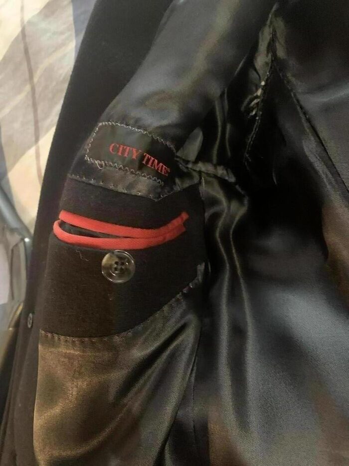 Cappotto 80% lana marca city time colore blu scuro lungo al ginocchio a 3 bottoni, con doppie tasche esterne e 2 taschini interni. Esternamente in ottime condizioni internamente la fodera presenta dei difetti, comunque direi ancora un gran bel cappottino. Taglia M (50), spalle 44 , lunghezza 90 cm .