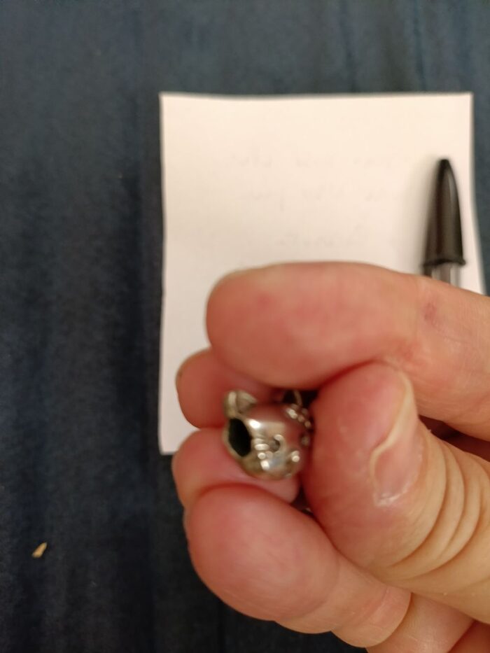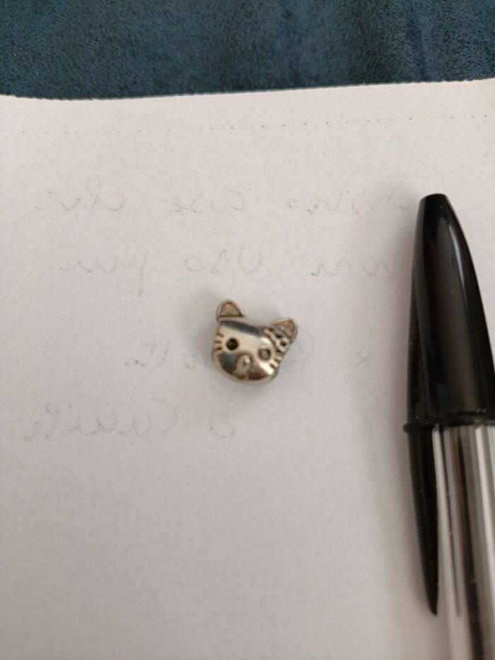 Charm in acciaio con la testa di Hello Kitty, è di quelli con i fori ai lati da infilare nel braccialetto .