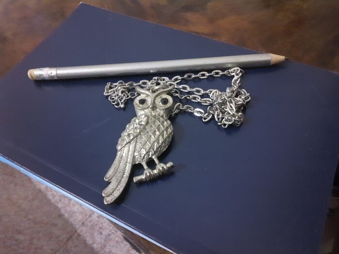 Ciondolo con civetta e catenina maglia larga, nessun difetto .