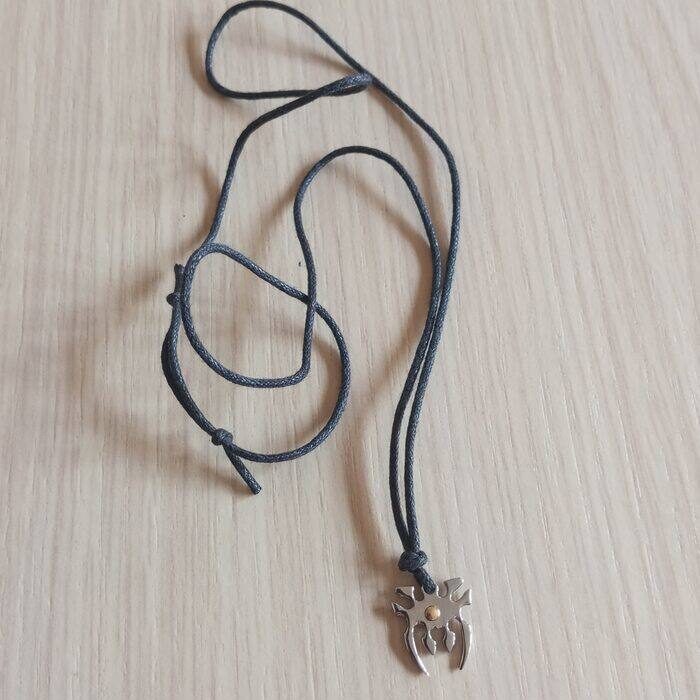 Collana con cordoncino nero regolabile e ciondolo tribale in acciaio con puntina dorata.
