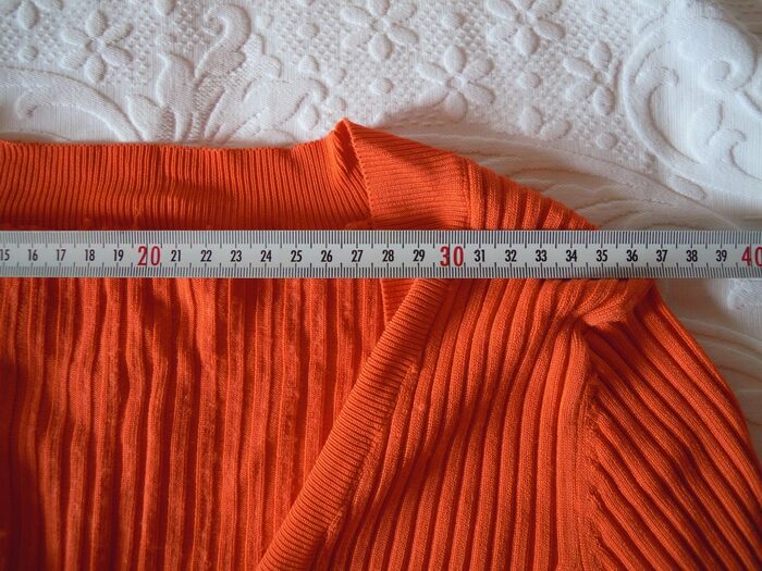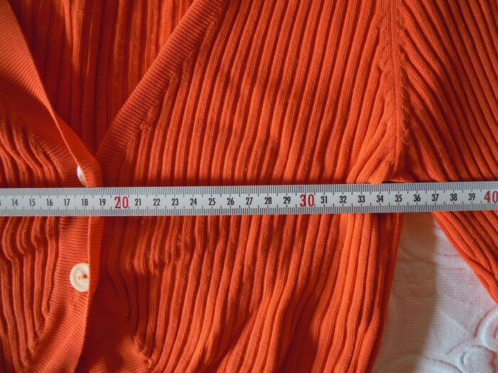 Manica lunga, metto foto con misure, ma anche in questo caso essendo mio direi che è una M. Ho ristretto le asole perchè i bottoni si sfilavano. Direi sintetico .