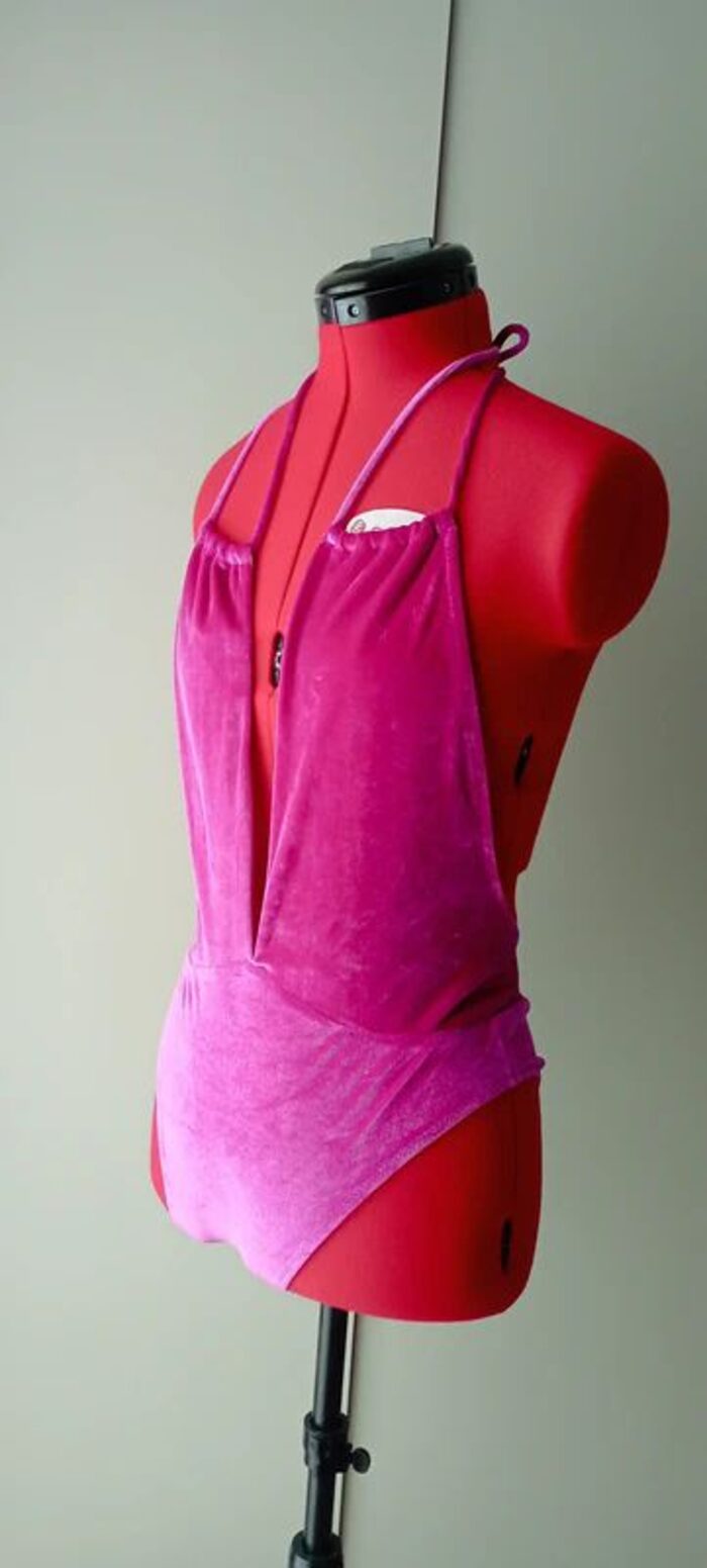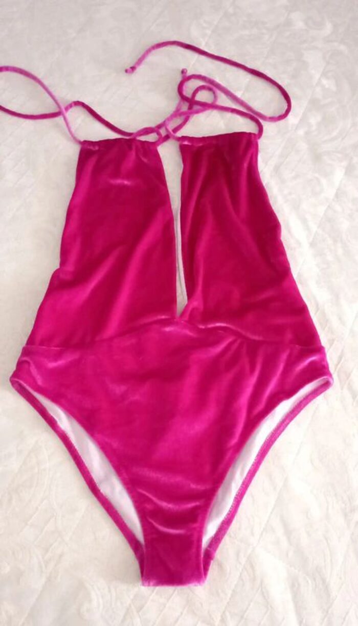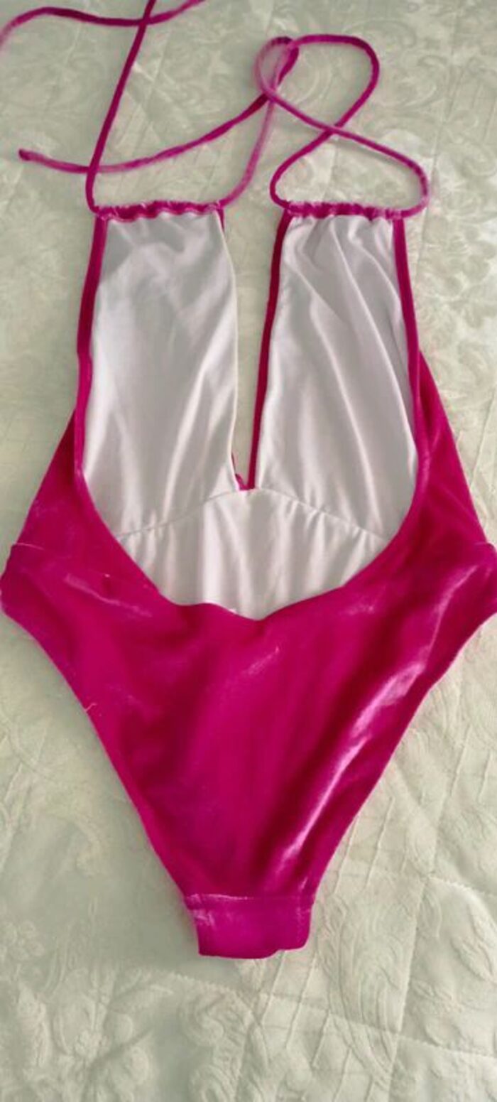Costume intero Yamamay in morbida ciniglia color fucsia.Modello particolare che lascia la schiena totalmente scoperta e con profonda scollatura davanti. Interamente foderato in tessuto bianco.Sul manichino non rende molto.Perfetto, senza difetti.Tessuto in poliestere.Taglia indicata M. .