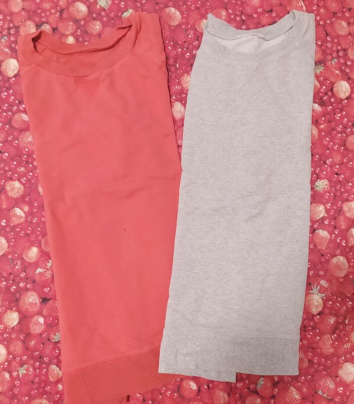Due felpe Decathlon usate tantissimo, con più segni di usura tipo machiette, ideali x lavori sporchevoli o all''aperto. taglia m. .