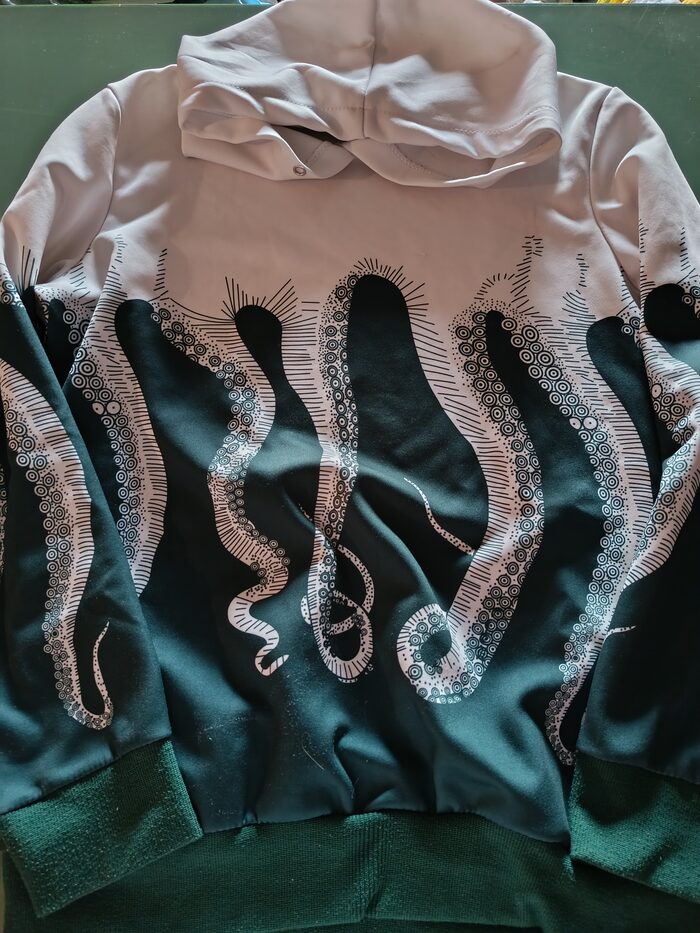 Felpa polpo tentacoli verde bianca