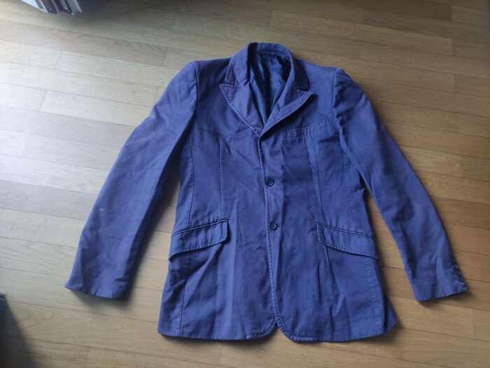 Giacca Itierre, taglia 52, foderata, era blu ma coi tanti lavaggi ora è un viola smunto. Sembra cotone .