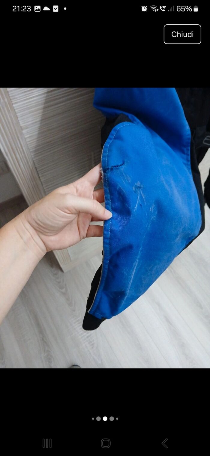Giacca moto Enduro della Axo. Dovrebbe essere TG. M. Misure da cucitura spalla a cucitura spalla 46 cm. Presenta una rottura/buco su un braccio e molti graffi da rami ma ancora ampiamente utilizzabile. .