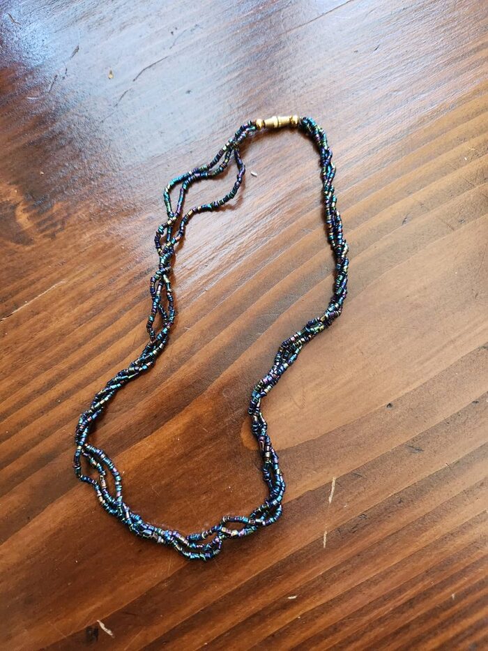 Girocollo perline blu in vetro, cm 40, senza difetti evidenti .