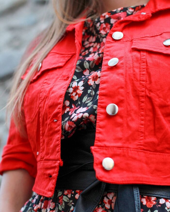 Cerco un giubbino rosso tipo quello in foto manica lunga o corta è indifferente da abbinare ad un vestito estivo.Grazie .