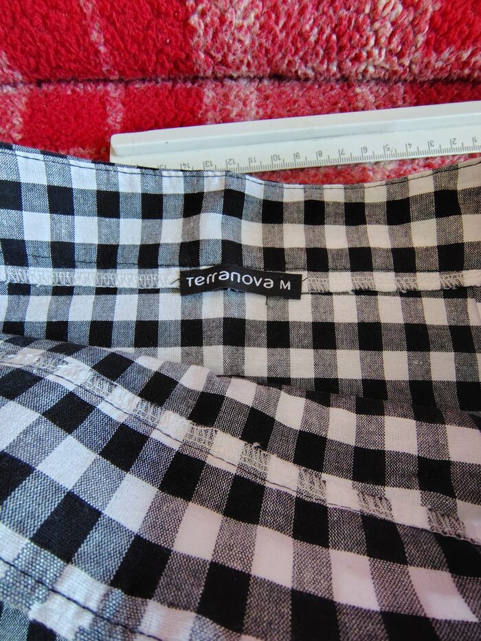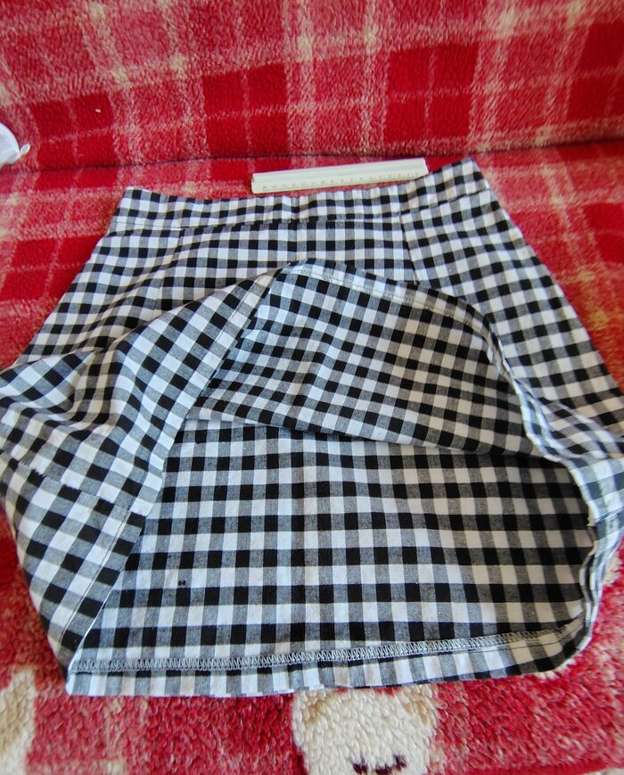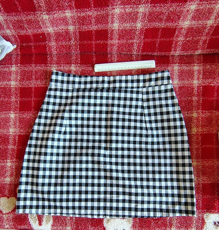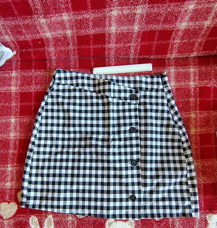 Gonna a quadretti con cerniera laterale. Riporta taglia M ma secondo me veste una S. Misure: vita 35 cm, fianchi 45 cm, lunghezza 41 cm.