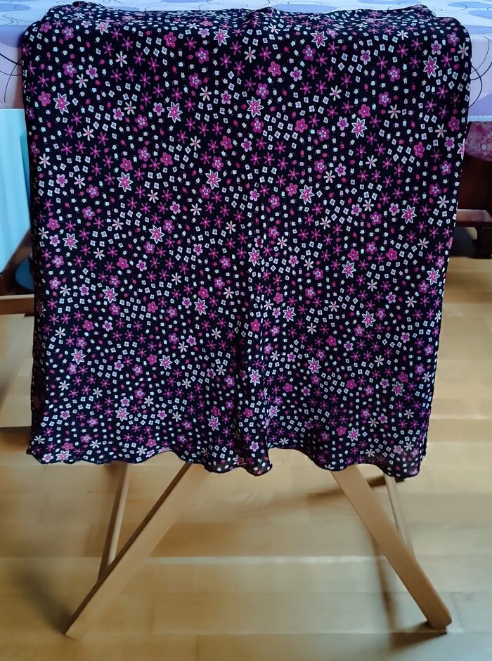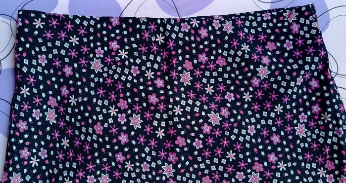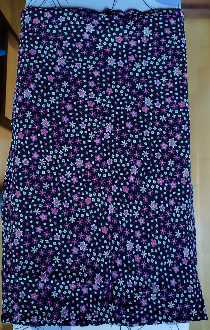 Gonna a fiori rosa e lilla, colore base nero.