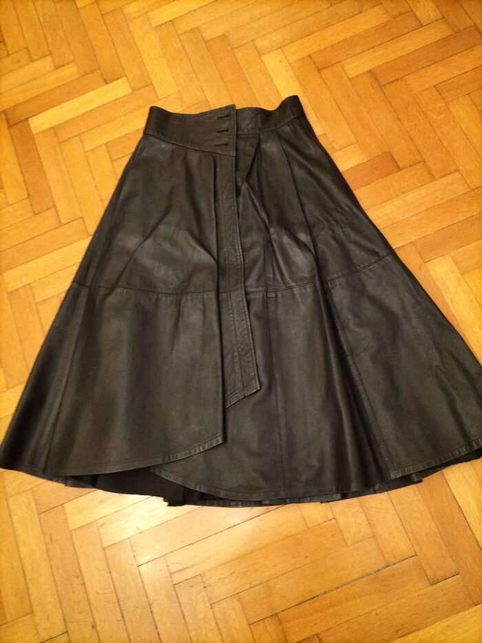 Gonna in pelle, molto morbida foderata larghezza massima cintura 72 cm, si può restringere spostando i bottoni, era a portafoglio è stata allargata. Da anni nell'armadio inutilzzata .