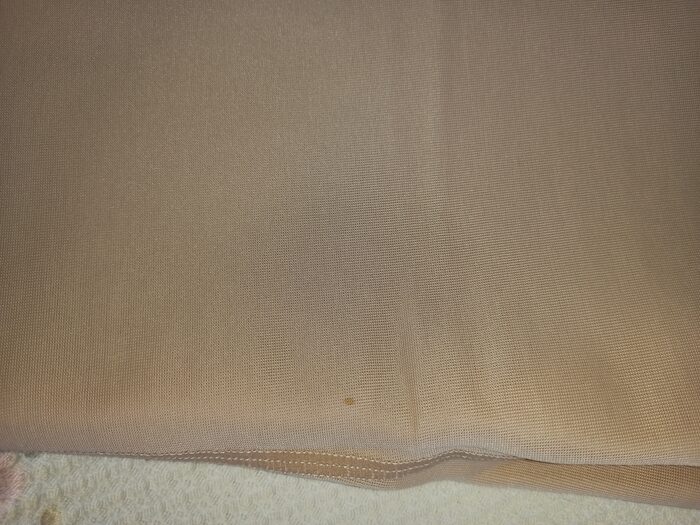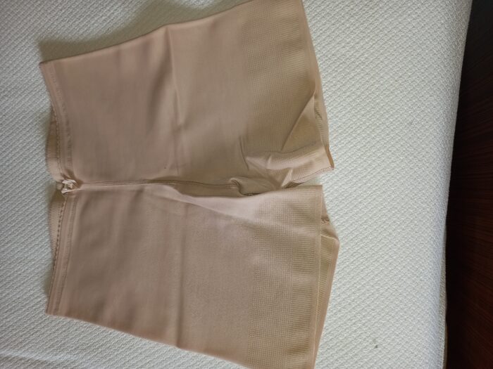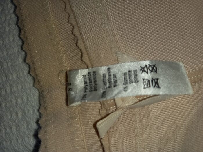 Guaina modellante credo mai usata,trovata in un cassetto di mia madre, ha una minuscola macchiolina marroncino da rimasta ferma nell'armadio. Larghezza vita a riposo cm 31,arriva circa a 39,altezza mutande compresa coscia circa cm 33 da dietro. Composizione: poliestere76%, elastan20,gomma 4 .
