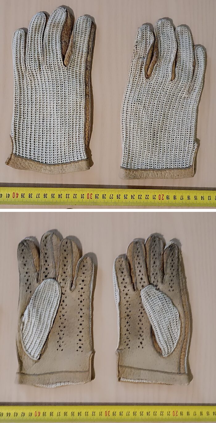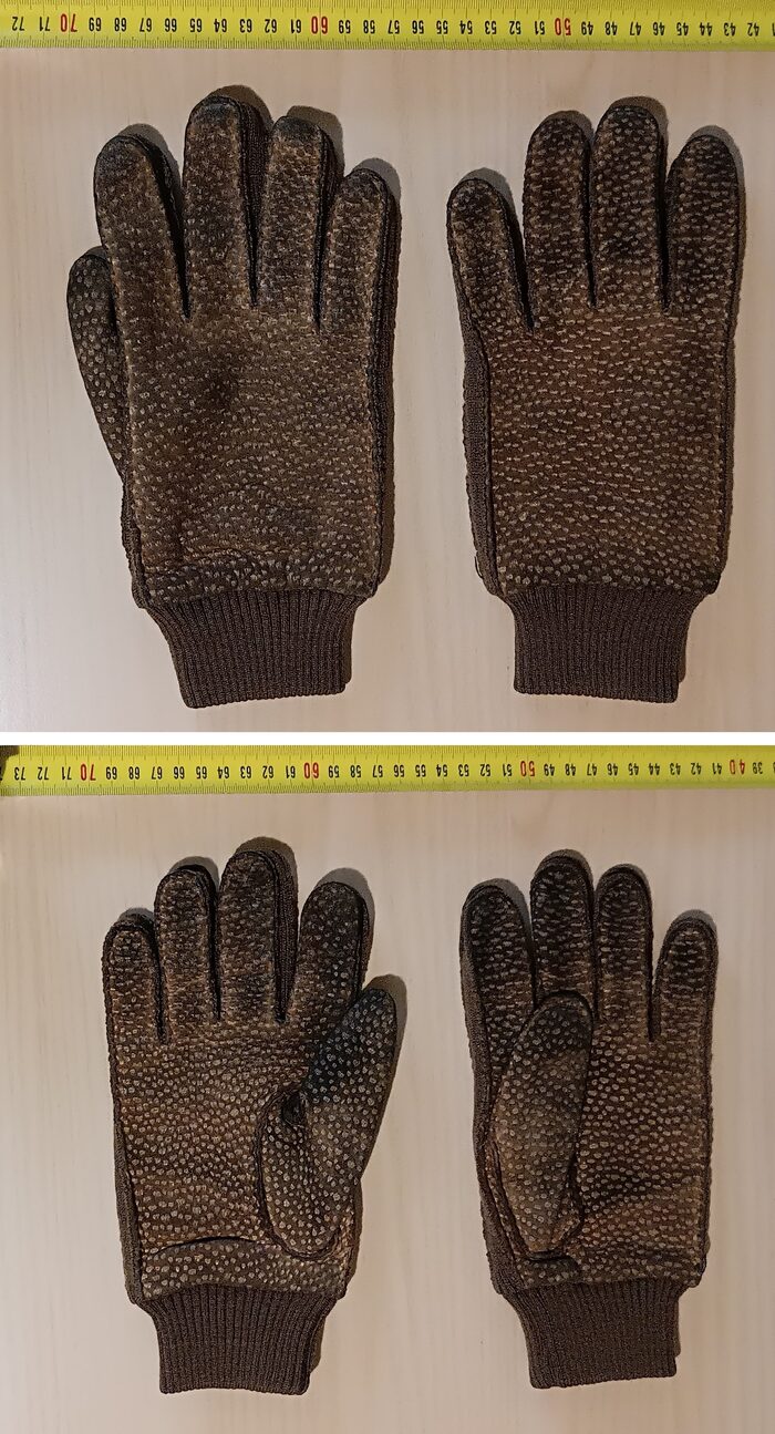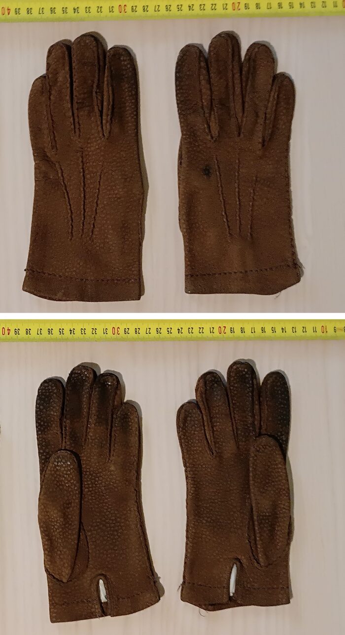 All’interno del guanto dx filo dell’orlo da riprendere, niente di che. E guanto sx un pezzettino di fodera è anch’esso da riprendere e riattaccare all’orlo.