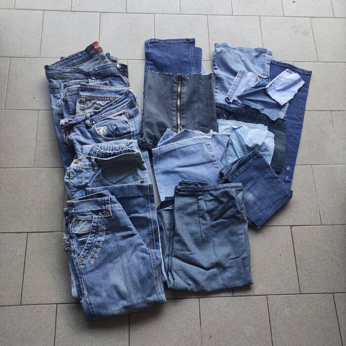 jeans di varie misure e modelli e ritagli di jeans. per creativi .