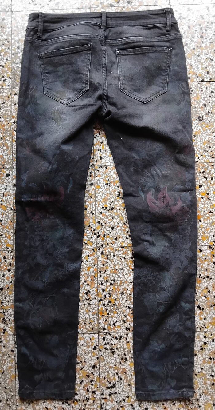 Misure vita 40 cm, fianchi 42 cm, cavallo 23 cm davanti - 27 cm dietro, gamba 91 cm. .