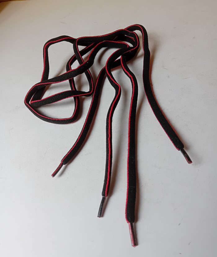 Ottimi e come nuovi, presi da scarpe numero 37, lunghi circa 73 cm, neri e rossi. .