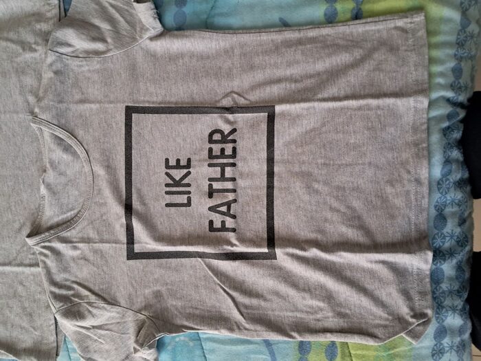 Due magliette, una da bimbo che veste più o meno 10-12 anni, una da uomo che veste una M-L. Molto divertente come idea, sono in cotone, anche se mancano etichette .