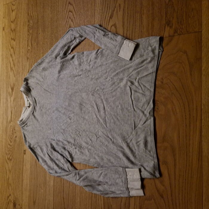 Maglia grigia e bianca in cotone, veste taglia m l .