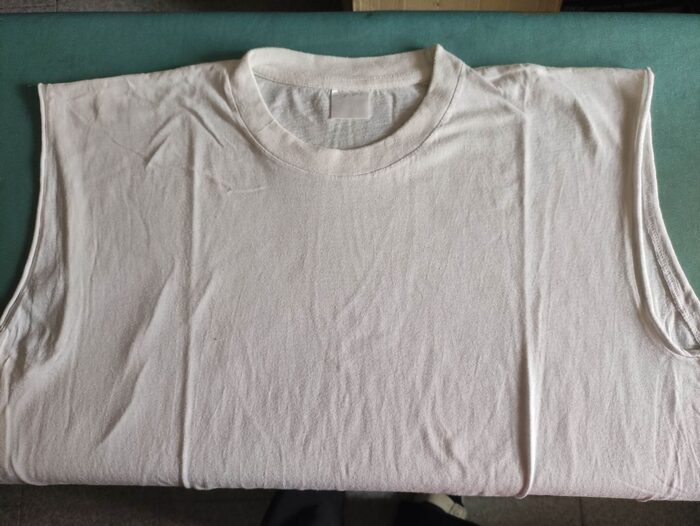 Cotone 100%, taglia 7 anche se le etichette non si leggono più. Buone condizioni Maglia tubolare, cioè senza cuciture sui fianchi Nessun difetto da segnalare .