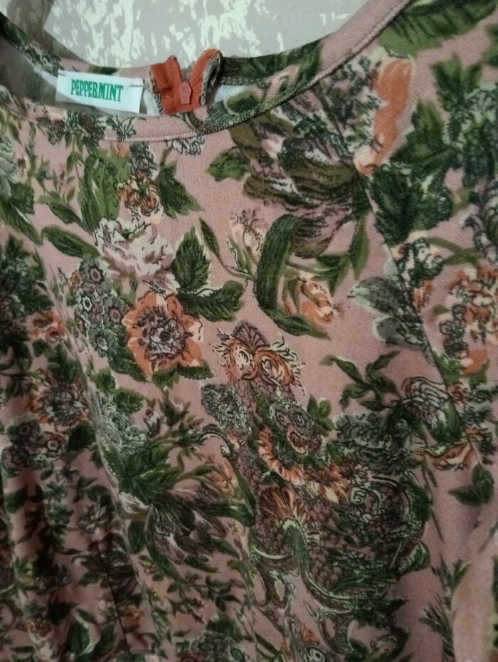 Maglietta a maniche lunghe con cerniera dietro,taglia non riportata (spalle cm.40 e lunghezza cm.46) penso in cotone.Marca Peppermint .
