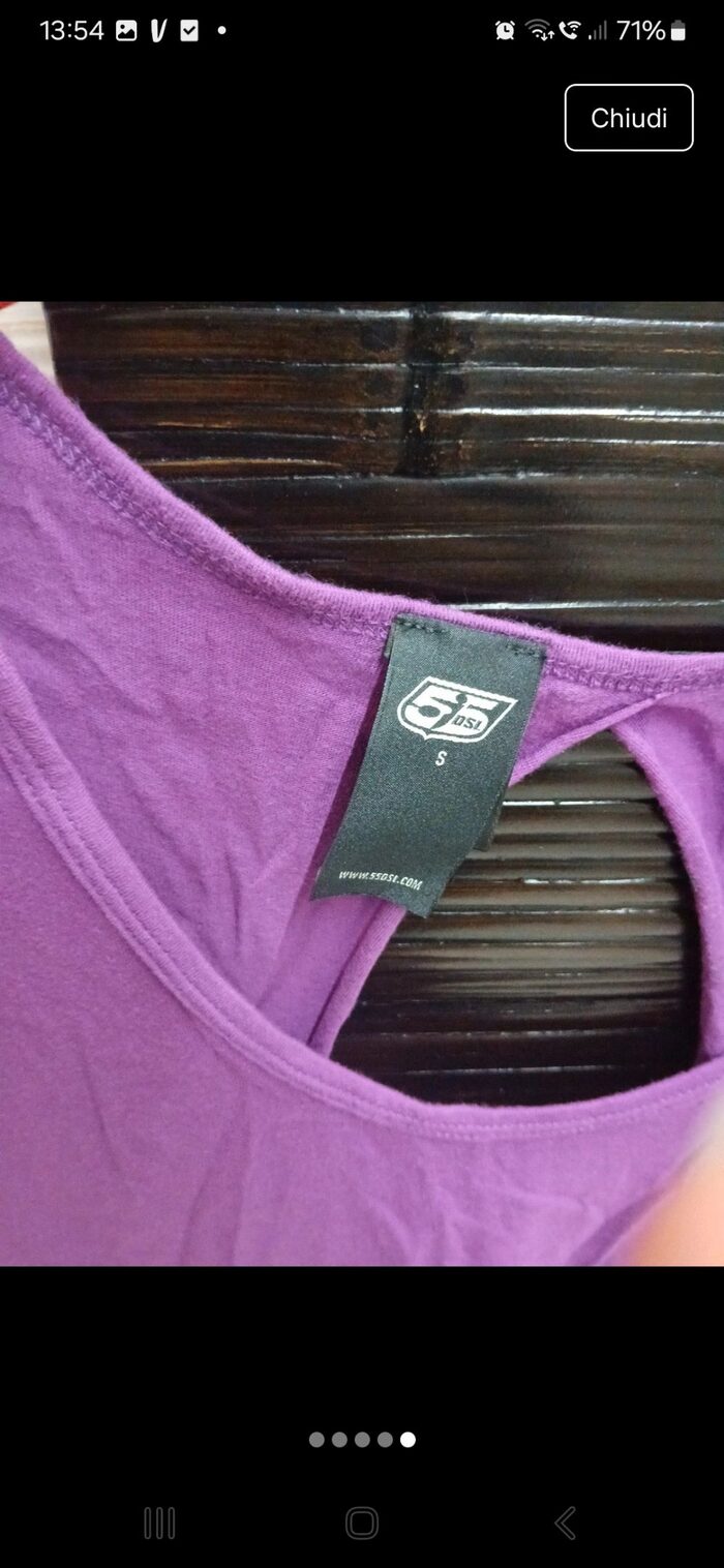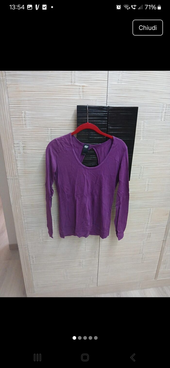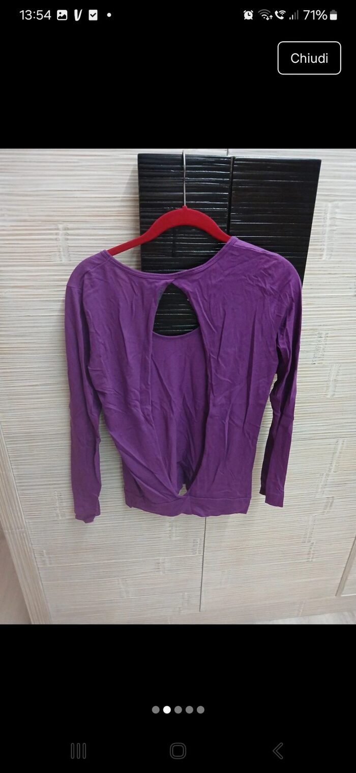 Bella maglietta a maniche lunghe con schiena scoperta. TG. S. Viola. Ottime condizioni. 100% cotone. .