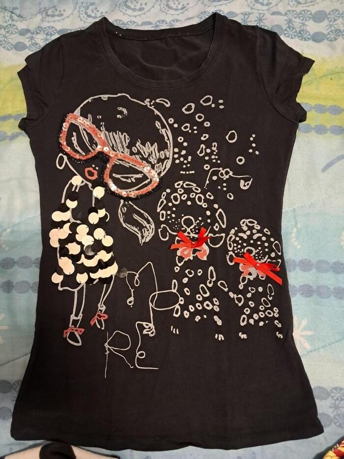 Maglietta sfiziosa in cotone 95% e spandex 5%, taglia non riportata, veste una s .