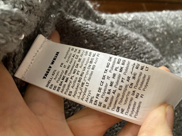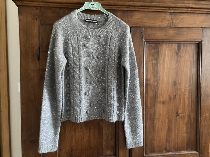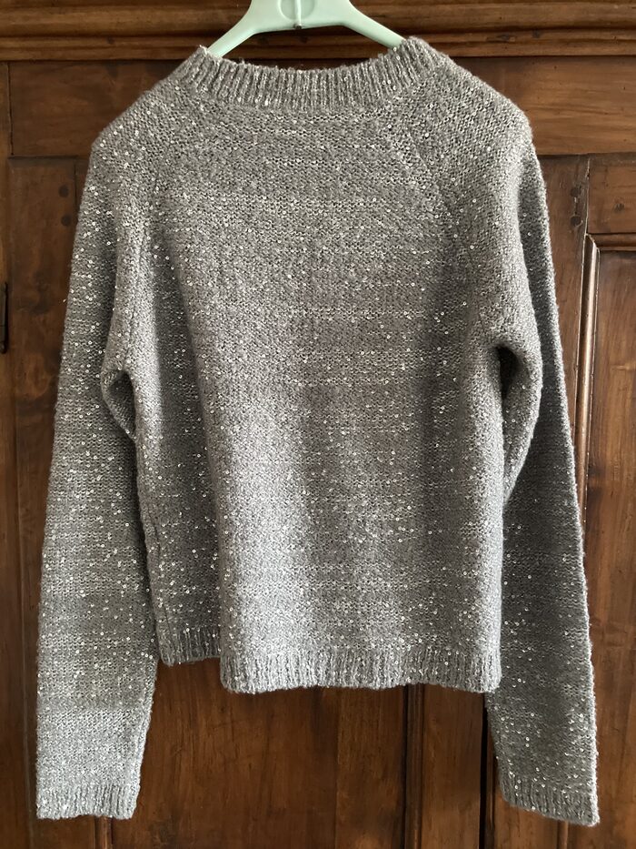 Maglione luccicoso grigio con filo e paillettes color argento. Taglia M.