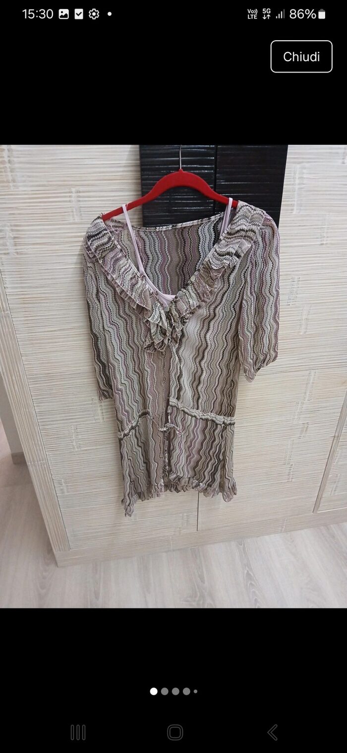 Mini abito o blusa con coulisse in 2 pezzi. La canottiera rosa all''interno infatti è staccata quindi si possono utilizzare anche separatamente. Ottime condizioni. 100% poliammide. Toni del rosa e del marrone. Manica 3/4. TG. direi M/L. Misure 47 spalle e 80 lunghezza .