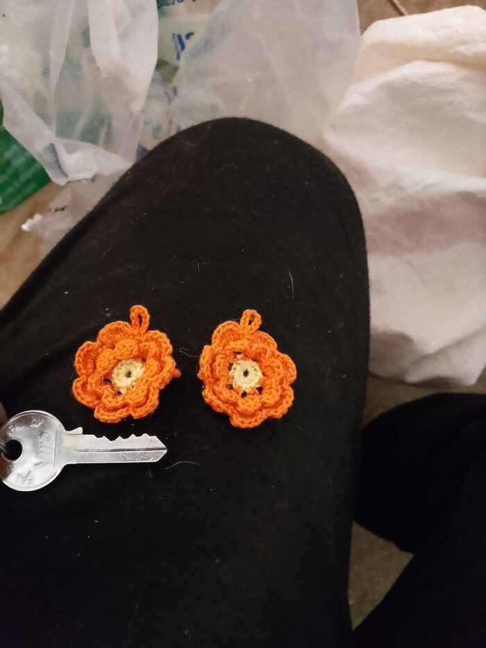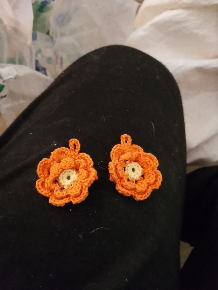 Orecchini fiore arancio realizzati da me ad uncinetto