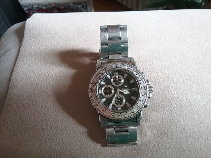 Orologio Breil, usato molto poi l''ho messo nel cassetto e da quando mi hanno regalato il Sector non l''ho più messo. La ghiera presenta segni e graffi, il vetro l''ho fatto cambiare di recente per cui è perfetto. Ovviamente è funzionante dopo aver cambiato la pila. Ho anche le maglie se dovesse essere stretto. .