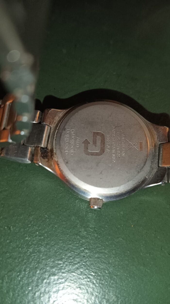 in metallo sarà da cambiare la pila interna diametro quadrante 3 cm la,diametro cinturino corca 8 da aperto da chiuso6.Sul vetro non cisono segni di graffi .