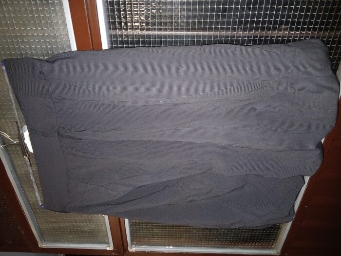 Molto originali, quasi a gonna . Corti a circa meta' gamba poliestere. A righine vicine .