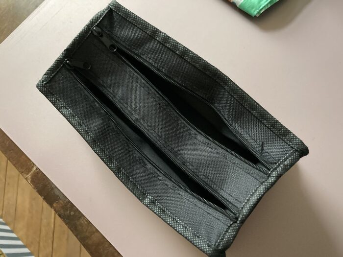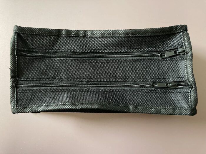 Tessuto tecnico. Due cerniere e due scomparti.Mai usato: sempre tenuto in un cassetto. Perfetto stato.Misura circa 20 x 10 x 6 cm. .