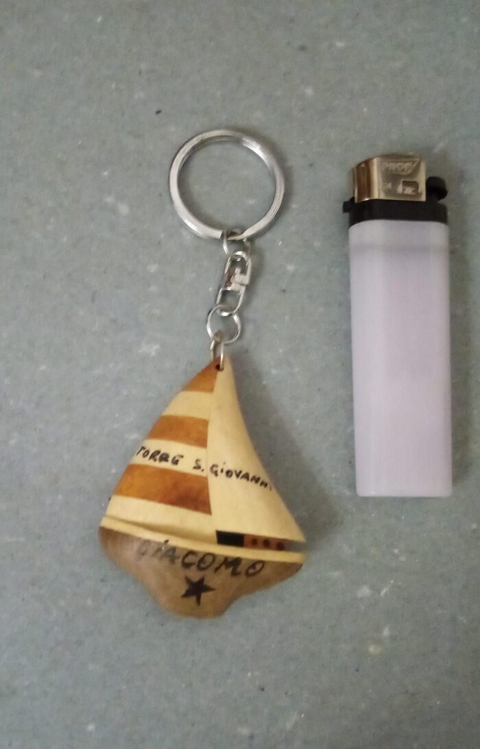 Portachiavi barca in legno "Torre San Giovanni" col nome Giacomo Credo nuovo