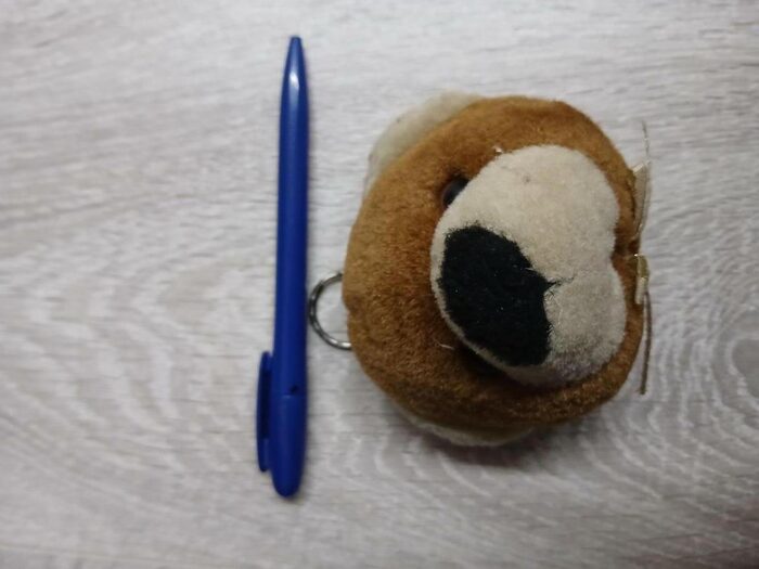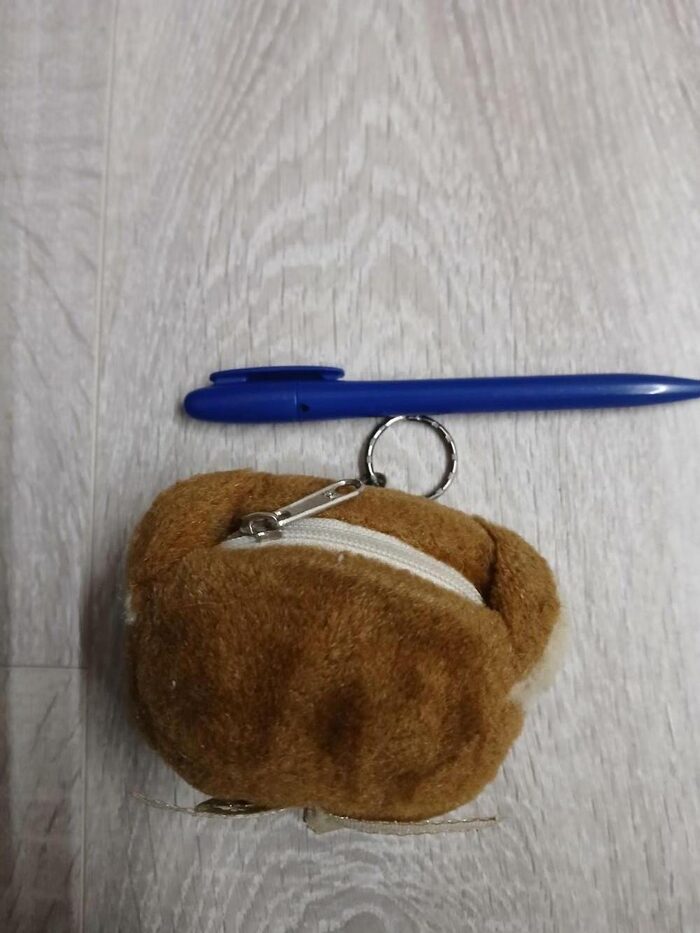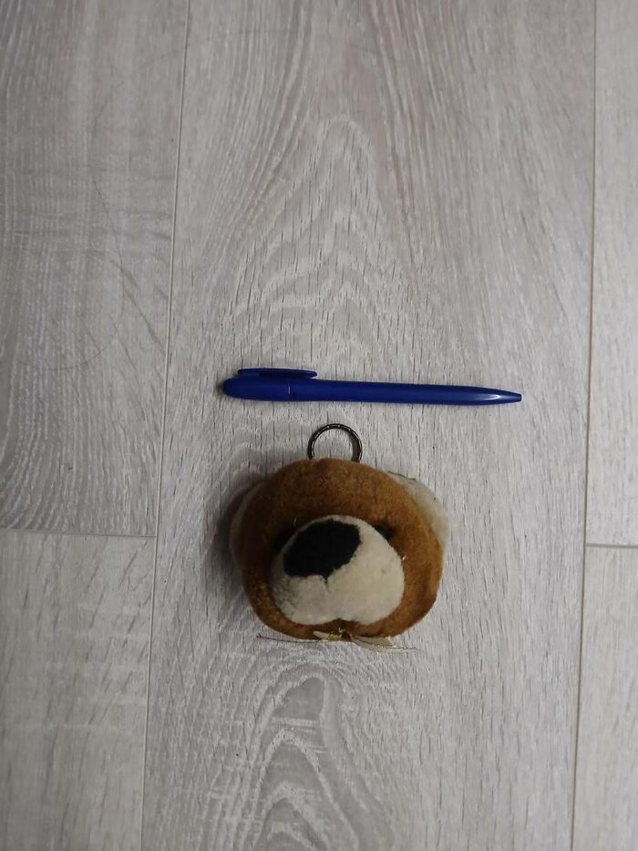 Portachiavi con testa di orso peluche. Dietro ha la taschina. Penna per le dimensioni. Spedisco in collettiva .