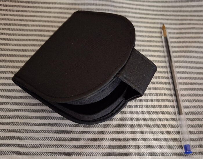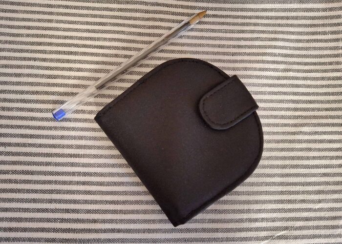 Portamonete in tessuto tipo impermeabile di colore nero, nuovo. .