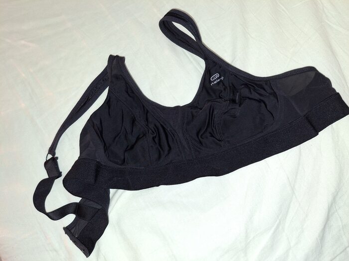 Questo reggiseno sportivo ha la fascia in basso che circonda il torace che si è smollata quindi se a qualcuno interessa e me lo dice entro poco lo regalo .