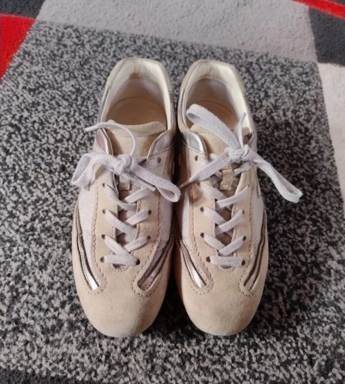 Sono leggermente rovinate come da foto nella parte interna del piede.Per il resto sono in buono stato Numero 35In pelle .
