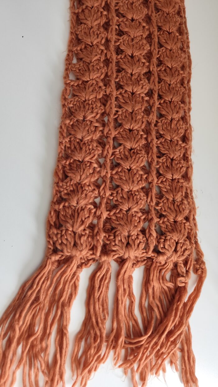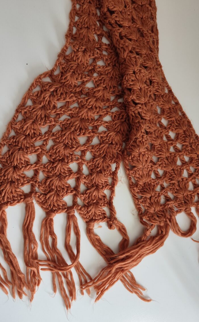 Sciarpa fatta a mano marrone uncinetto con frangia | Cose(in)utili.it