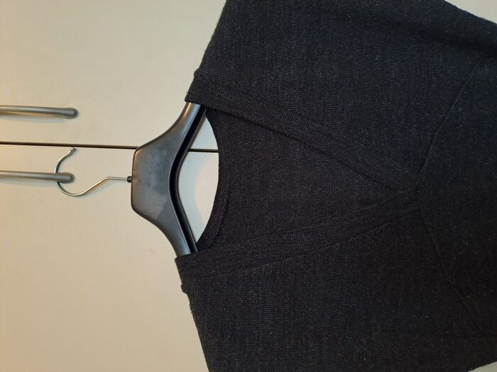Veste S M con cinta in vita color blu , lungo . Mohaur misto acrilico , qualche filo luminoso blu, molto bello .