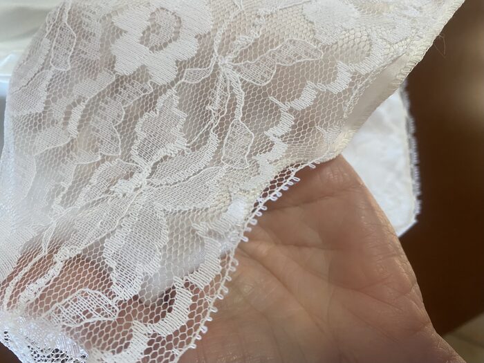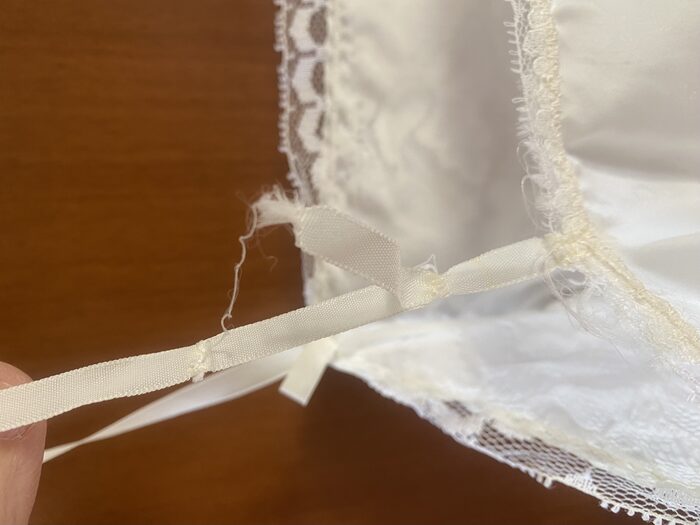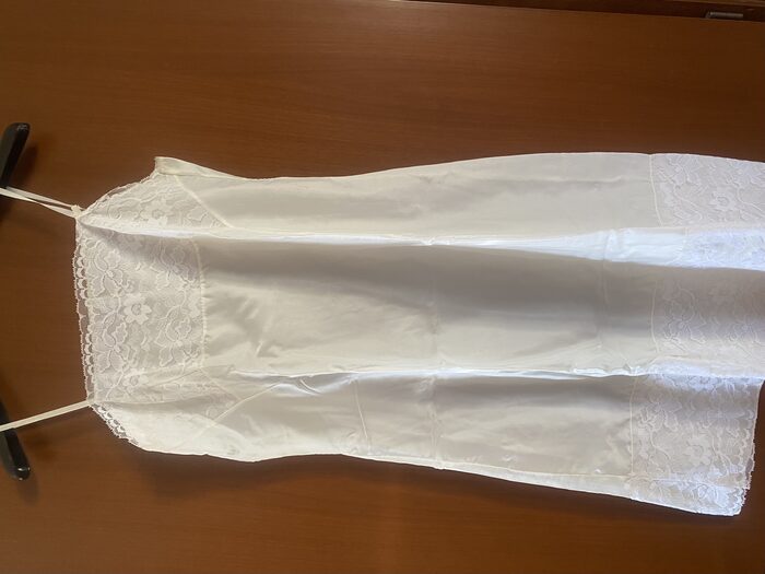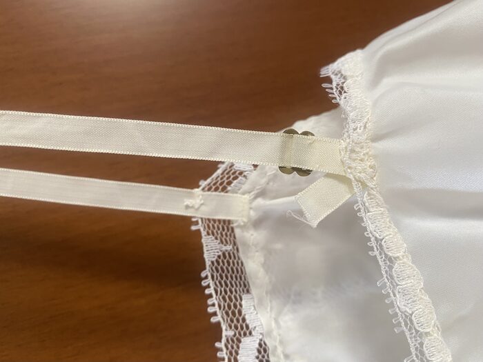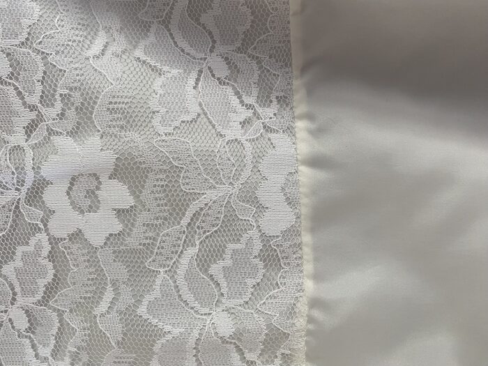 In tessuto sintetico, piccolo difetto sul retro di una spallina (vedi foto 4) con dettagli in pizzo .