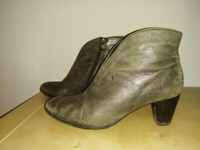 Misura 37 e mezzo. Colore tortora semilucido (effetto anticato). tacco 5cm e mezzo. .