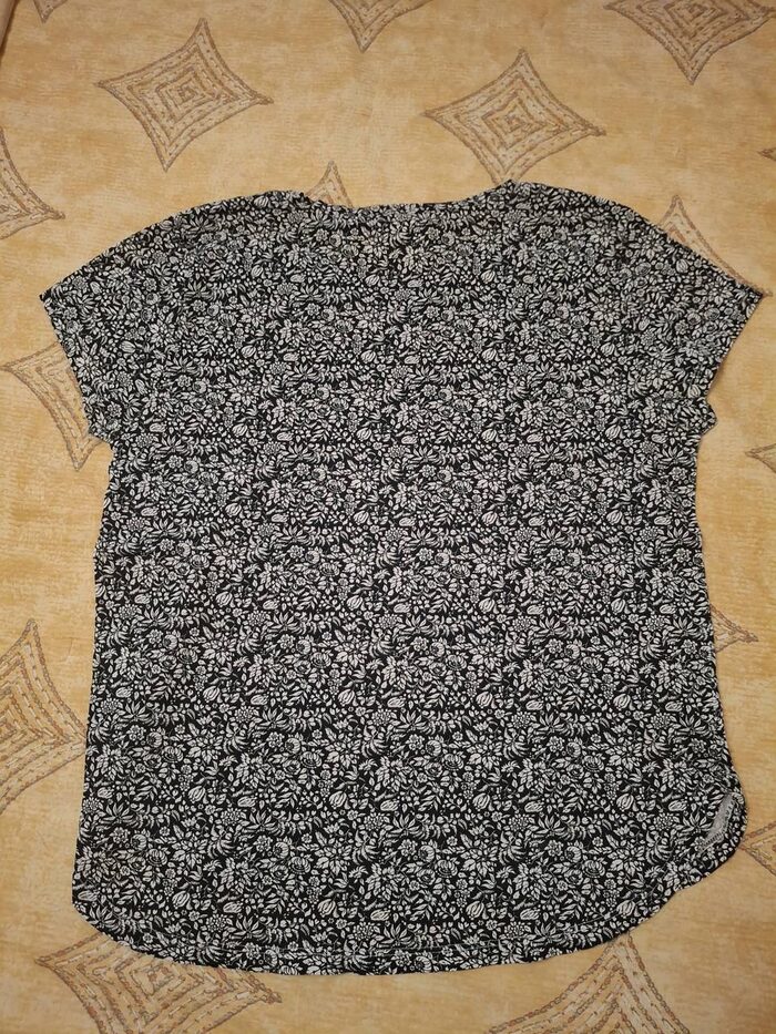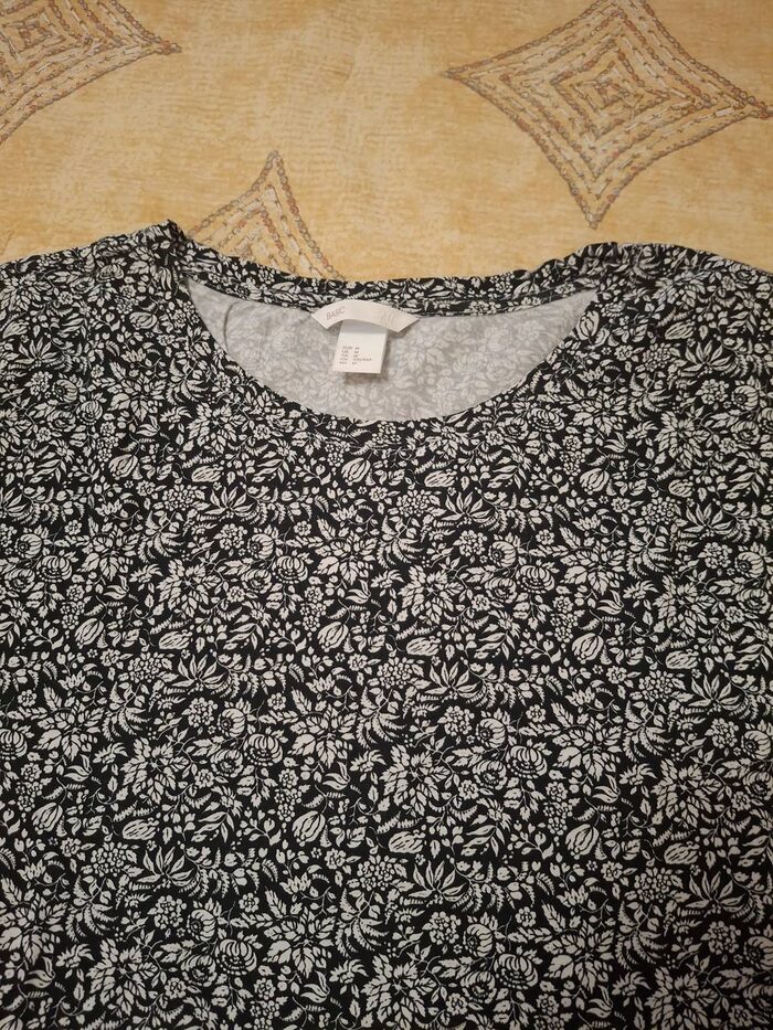 Maglietta t-shirt di H&M con fantasia a fiori bianca e nera, taglia M, 100% cotone. Usata pochissime volte, in ottime condizioni. .