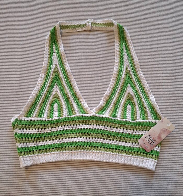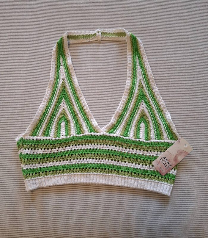 Top crop estivo 100% cotone con lavorazione tipo uncinetto.