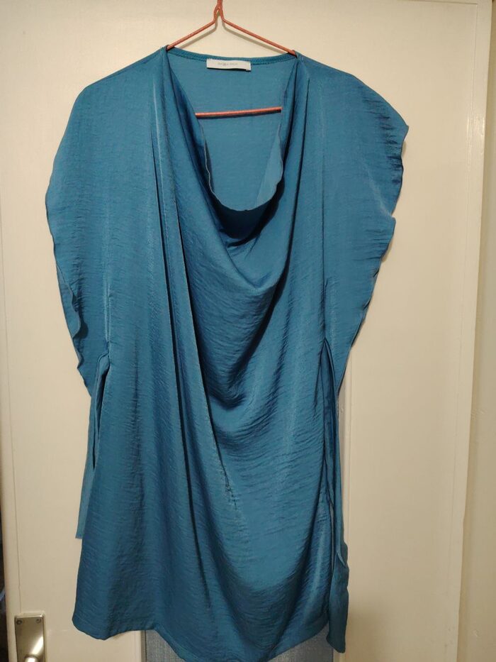 Bellissimo vestito donna mai usatoTG SIn viscosa ed elastanColor blu con coulisse in vita da allacciare o dietro o davanti .