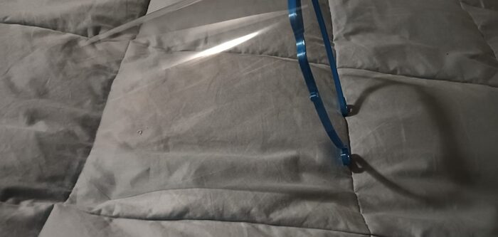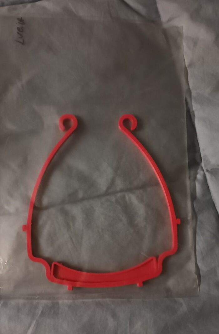 visiera componibile,formata da una lastra morbida di plastica e un cerchiettto da mettere sull fronte,ne ho due,formato folglio A4